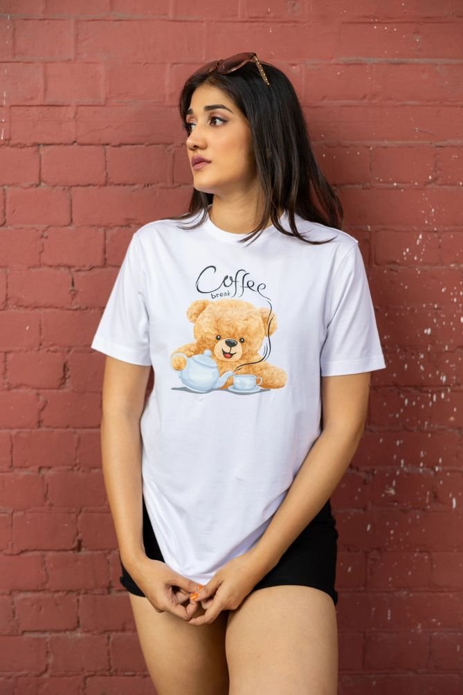 If you love cute, aesthetic fashion with everyday comfort, the Coffee Break Teddy Oversized T-Shirt is a must-have addition to your wardrobe.