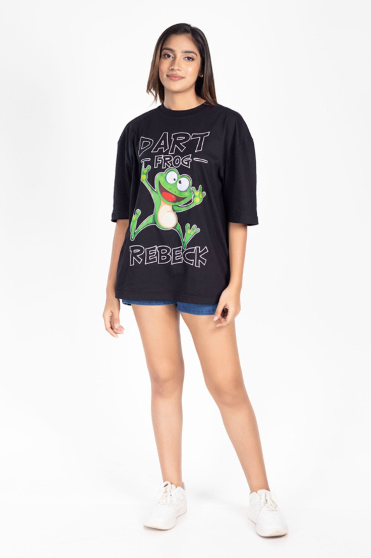 Dart Frog Rebeck Oversized Tee for Women – Fun & Playful Cartoon T-Shirt