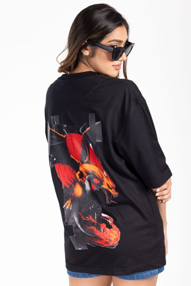 The standout element of this Dragon Oversized Tee for Women is the striking fiery dragon graphic on the back, symbolizing power, strength, and confidence. Whether paired with denim shorts, cargo pants, or sneakers, this tee instantly elevates your casual look into a statement outfit.