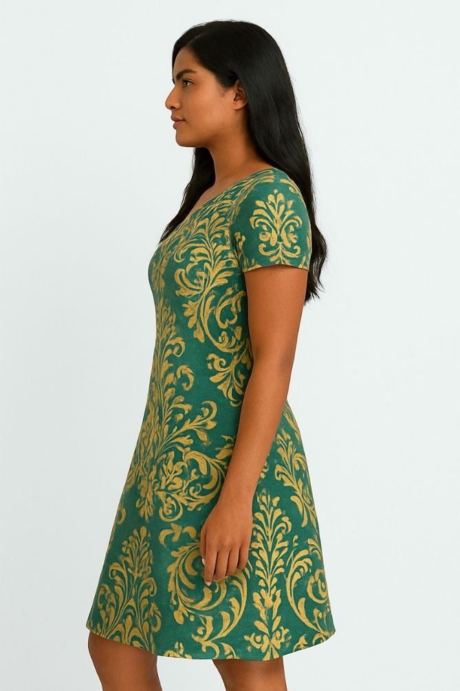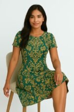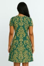 🌸 Design: Classic Green Floral A-Line silhouette, fit & flare style
