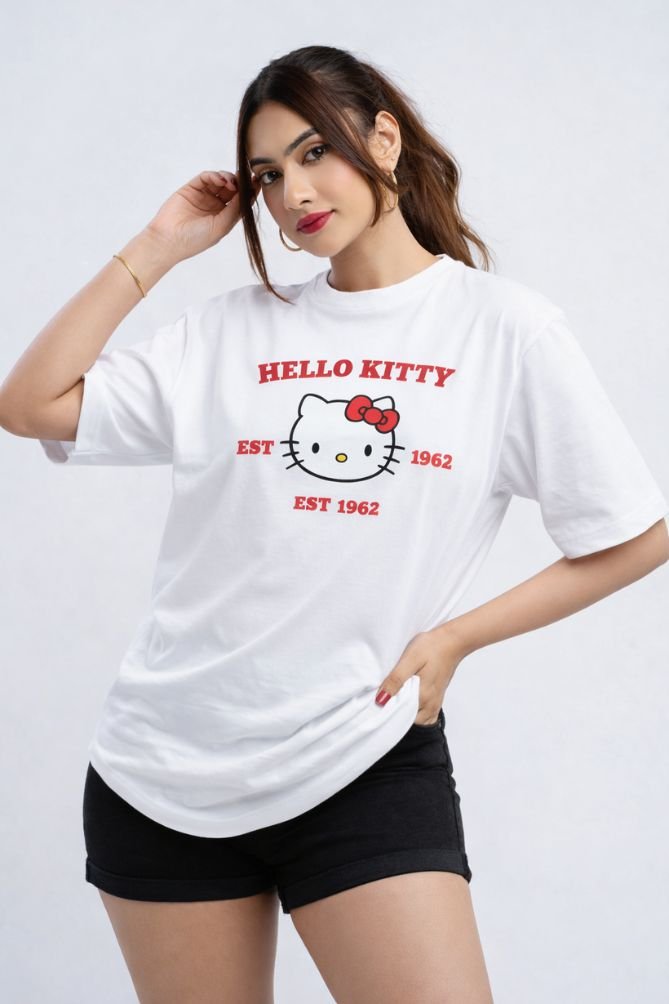 Whether you’re stepping out for coffee, college, travel, or lounging in style, the Hello Kitty Oversized T-Shirt blends comfort and personality perfectly.