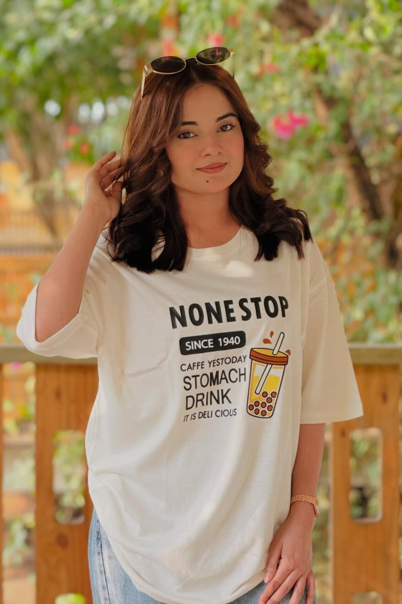For easy care, wash the None Stop Drink Oversized Classic Tee inside-out in cold water and dry on low heat. Iron inside-out to maintain print quality and fabric finish. Pair it with jeans, cargos, or shorts to create an effortless outfit that blends comfort, personality, and premium craftsmanship.
