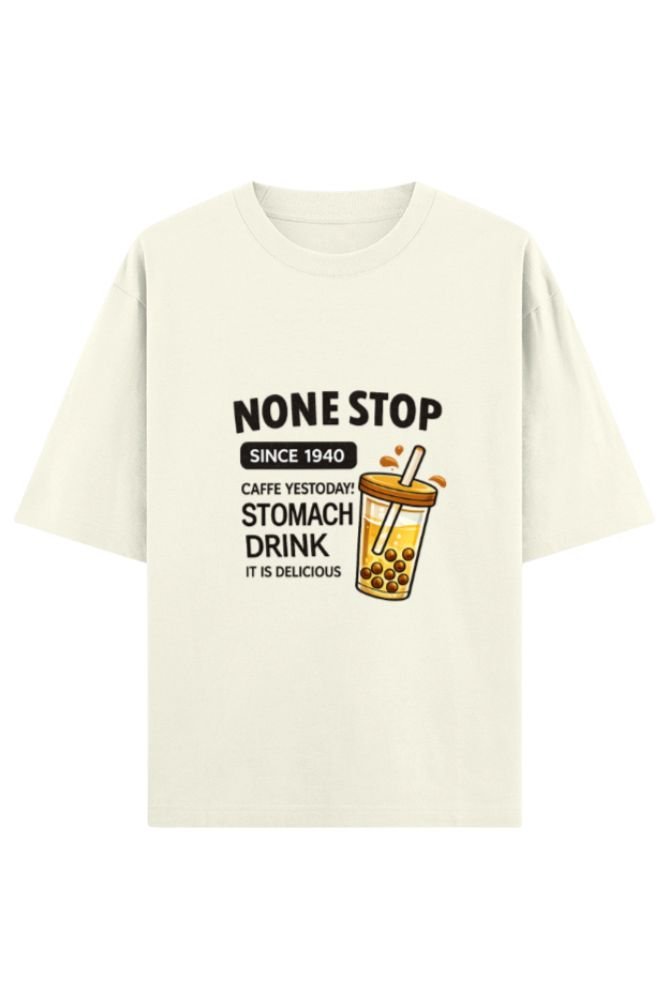 None Stop Drink Oversized Classic Tee is designed for those who enjoy playful graphics combined with everyday comfort. Made from 100% cotton with 240 GSM heavyweight fabric, this tee offers a premium feel while staying breathable and soft for all-day wear. The None Stop Drink Oversized Classic Tee features a unisex oversized fit with extra length and dropped sleeves, creating a relaxed and stylish silhouette that suits modern streetwear trends.