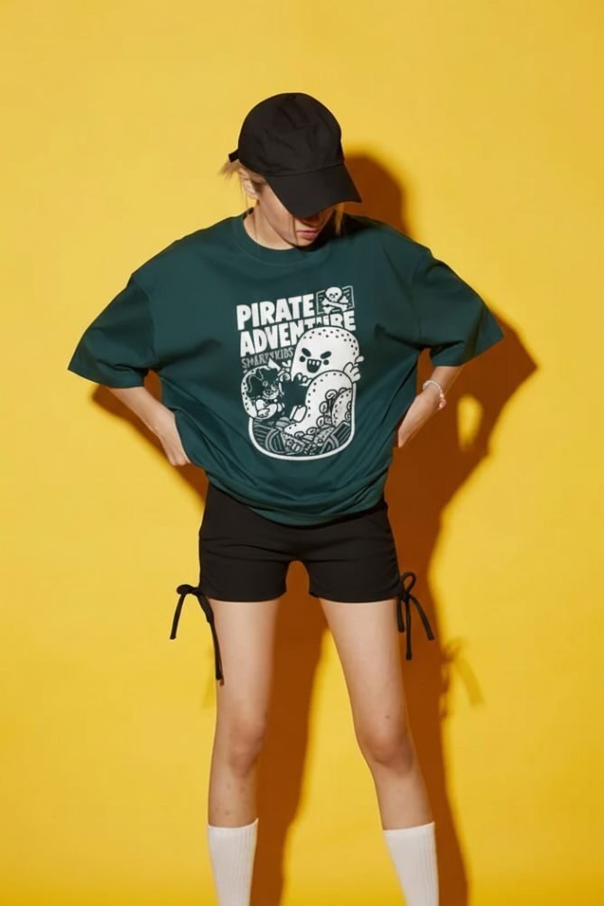 Pirate Adventure Oversized T-Shirt is the ultimate statement piece for Gen Z women who love playful fashion with a purpose. Featuring a bold cartoon-style pirate print, this tee brings personality to your wardrobe—fun, fearless, and effortlessly cool.
